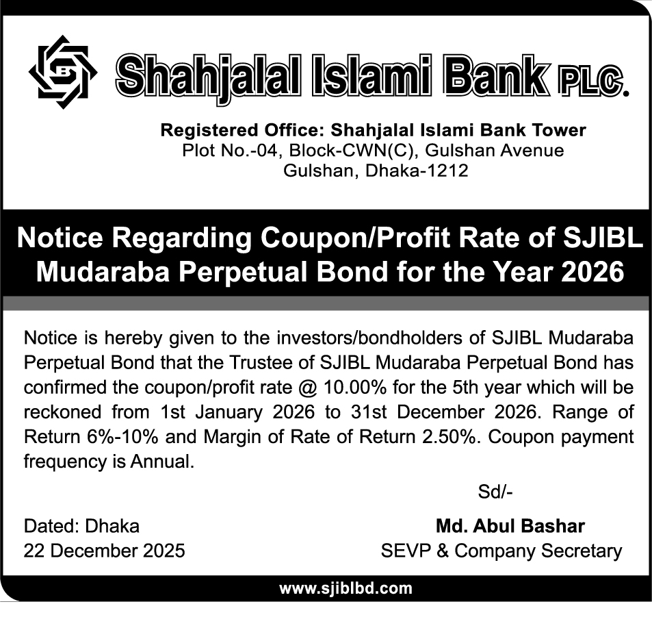 Notice Regarding Coupon/Profit Rate of SJIBL Mudaraba Perpetual Bond for the Year 2026