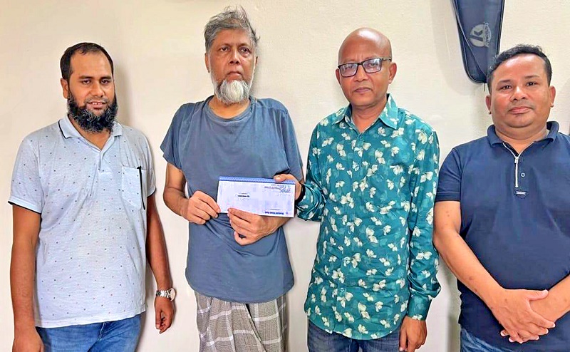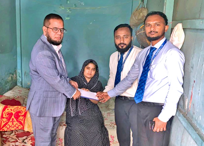 Shahjalal Islami Bank PLC provides financial assistance to a resident of Afra village in Narail district for cancer treatment